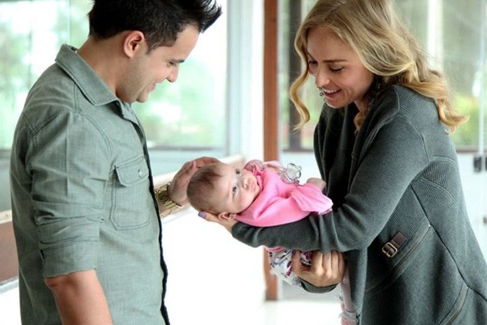 “A chegada de um bebê mexe com a nossa rotina, desanda com nossos horários, deixa avós e tios eufóricos e mães e pais exaustos, mas radiantes”, disse a apresentadora ao encontrar com os sertanejos. João Neto é casado com Lorena e pai de Laura de 4 meses. Frederico e sua mulher Alessandra têm as gêmeas Bárbara e Heloísa de apenas 2 meses. “Somos tão parecidos que na minha listinha de nomes, tinham os dois das filhas do Fred”, contou João.