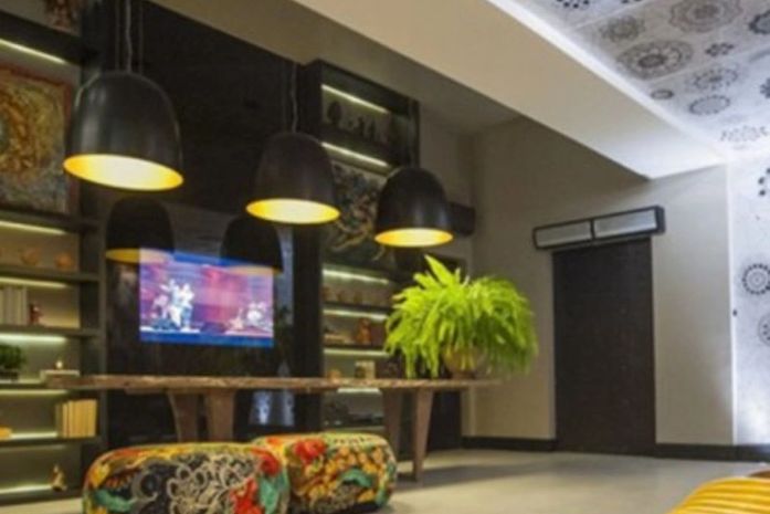 No home theater Cacá Diegues, projetado pelas arquitetas Maria Palmeira e Marta Nogueira, a estante da Evviva ganhou ares de galeria, com um acervo de objetos pessoais do autor nordestino. O inusitado aparece com o desprendimento da estante da parede e o lúdico com um belíssimo trabalho do artista plástico Dalton Costa, com o uso de garrafas e porta como pano de fundo.