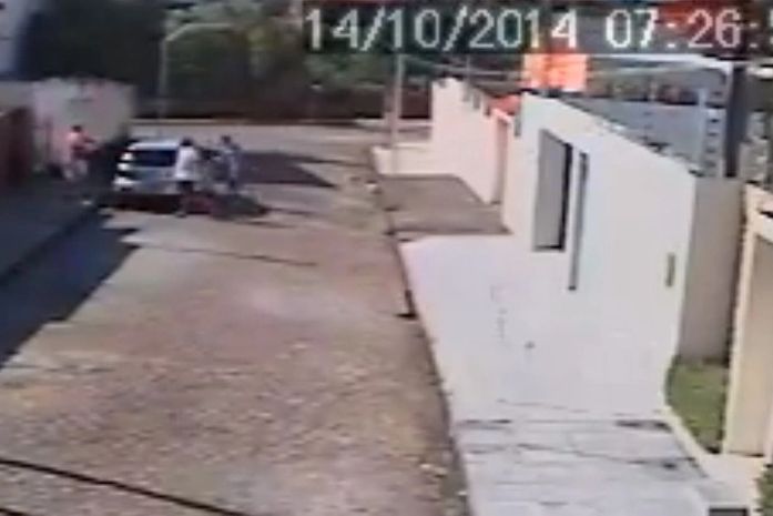 O circuito interno de segurança da rua onde o assalto ocorreu flagra o momento em que os homens abrem a porta do veículo e retiram à força o motorista de dentro do veículo. Em seguida, o trio entra no veículo e foge.