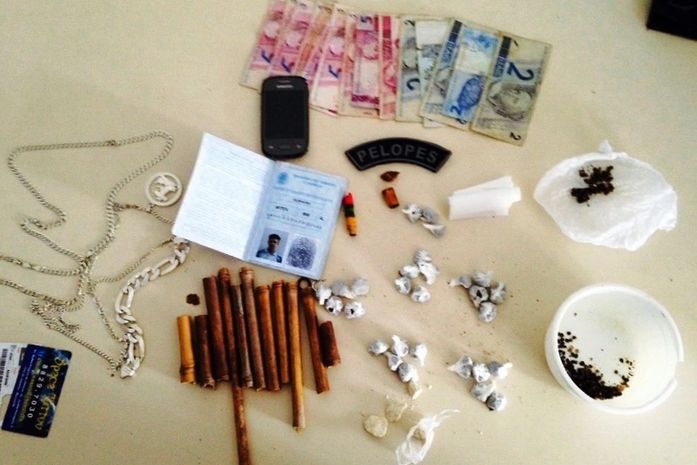 Com os suspeitos foram apreendidos, além da motocicleta modelo Honda, de cor azul e placa ORI-5436/AL, usada na fuga, 28 bombinhas de maconha e cinco pedras de crack. Também foram encontradas com a dupla, algumas sementes de maconha, um aparelho celular e vários cachimbos usados no consumo do entorpecente.
