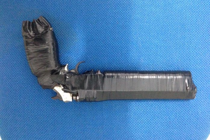 Policiais militares apreenderam uma arma artesanal de calibre 38. O segundo envolvido fugiu.