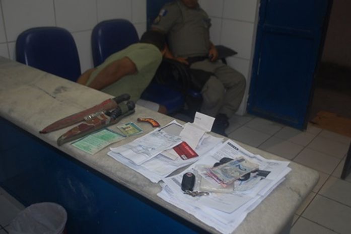 Com o homem, policiais do Batalhão Escolar apreenderam duas facas, uma identidade em nome da suposta vítima, um veículo de marca Fiat, uma quantia em dinheiro e outro cartão de uma loja de roupas. A Polícia Civil irá apurar a procedência do carro.