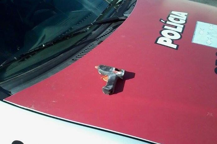Após uma revista na vítima, policias apreenderam uma pistola de cola quente e uma quantia em dinheiro que acreditam ser fruto do roubo.