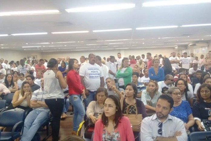 Familiares da soldado Isabelle Pereira, morta com dezenas de tiros de submetralhadora, enquanto trabalhava, dentro do carro da PM, em agosto do ano passado, também estiveram presentes na reconstituição para prestar apoio aos parentes do agente penitenciário Joab Júnior.