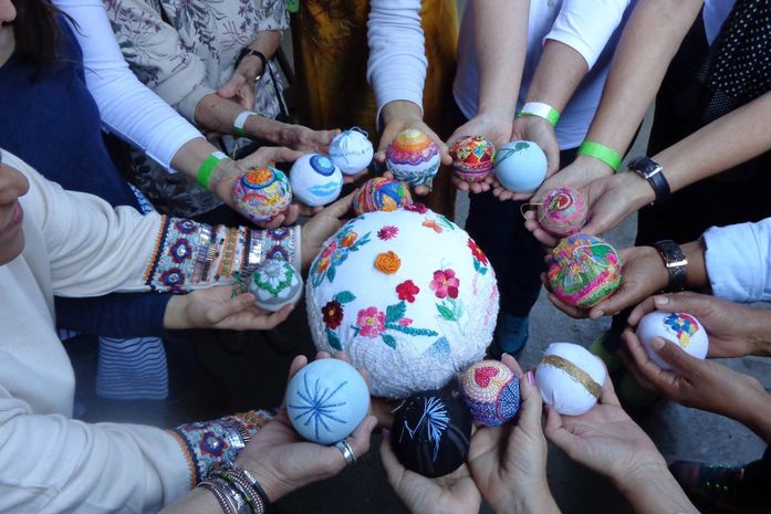 “O processo de construção e bordado da bola simboliza a história de vida de cada participante, longe dos celulares e artigos eletrônicos em geral. Todo o processo acontece através de várias dinâmicas e abordagens, incluindo exercícios respiratórios, alongamentos e partilha das experiências pessoais de cada um”, enfatiza a artesã, que desenvolve há 28 anos, dentro da Pró-Reitoria de Assuntos Comunitários da Universidade de Campinas (Unicamp), oficinas motivacionais.