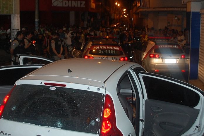 “O motorista que estava conduzindo o veículo não resistiu na hora de se entregar. Os outros dois efetuaram disparos e nós revidamos”, disse um policial, mostrando o para-brisa da viatura, que foi atingido. Na ação, duas pistolas, uma calibre 32 e outra .40, foram apreendidas.