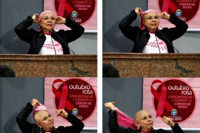 Ao falar de sua própria luta contra a doença, a vereadora tirou o lenço da cabeça e, desde então, tem aparecido sem ele nos eventos públicos.