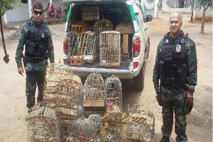 Dando continuidade à operação, foram apreendidos 75 pássaros que estavam em cativeiro ilegalmente, aprisionados em gaiolas em via pública. Os detentores dos animais não foram localizados. Os pássaros foram encaminhados ao Centro de Triagem de Animais Silvestres (Cetas) do Ibama.