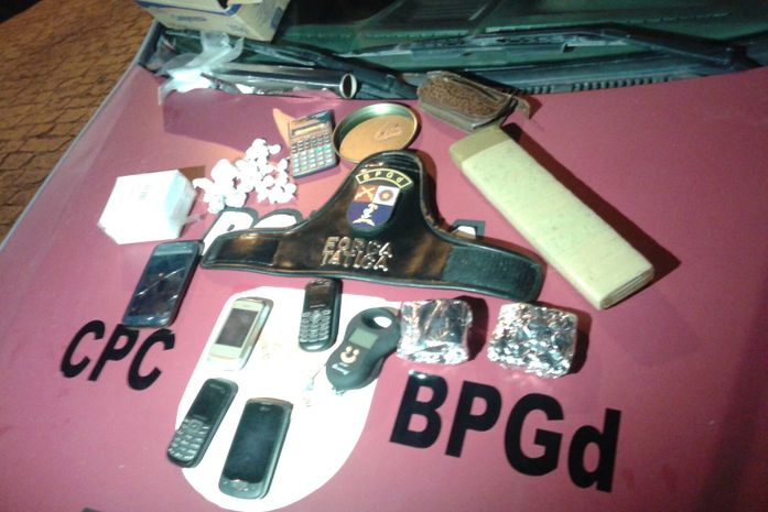 No imóvel, os agentes da Segurança Pública encontraram 850g de maconha, 35g de cocaína, celulares, R$ 40,00 em espécie, embalagens para a comercialização das drogas e uma balança de precisão.