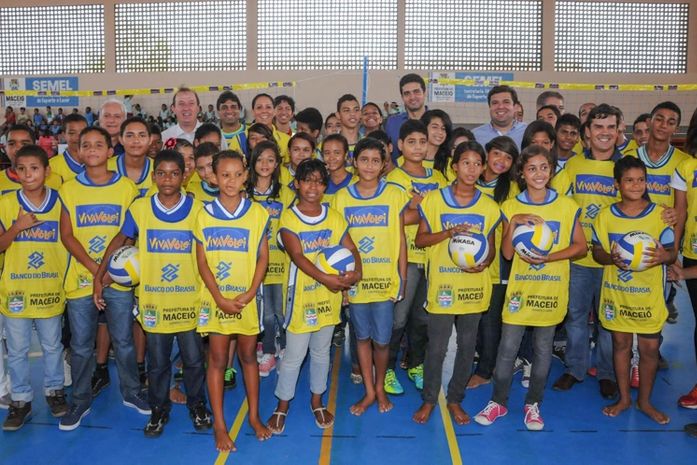 Com o intuito de educar e socializar meninos e meninas de 7 a 14 anos por meio esporte, a Secretaria Municipal de Esporte e Lazer (Semel) promoveu, neste ano, aulas de iniciação ao voleibol a partir do Projeto Viva Vôlei – em parceria com a Confederação Brasileira de Vôlei (CBV), Banco do Brasil (BB), Federação Alagoana de Vôlei (FAV) e a Secretaria Municipal de Educação (Semed). Nas manhãs e tardes de terças e quintas-feiras, desde março, alunos das escolas municipais Gerusa Costa e Balthazar de Mendonça, ambas no Jacintinho, tiveram aulas do projeto no Ginásio Arivaldo Maia.