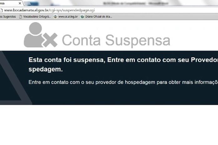 O problema é que, pelo menos agora pela manhã, ao acessar a página oficial da prefeitura aparece a seguinte mensagem: “Esta conta foi suspensa, entre em contato com seu provedor de hospedagem”.