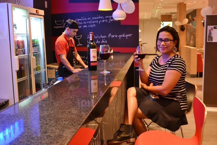 O serviço de bar surpreendeu. Um bom vinho (no cardápio, por R$ 40), ambiente aconchegante, música tranquila e atendimento impecável. Algo que realmente faltava por estas bandas. O bar Ibis Lounge é aberto 24h para hóspedes e público em geral, com drinks (até café!) e comidinhas. As dependências também são ótimas para reuniões de negócios ou apenas para descontrair com amigos.