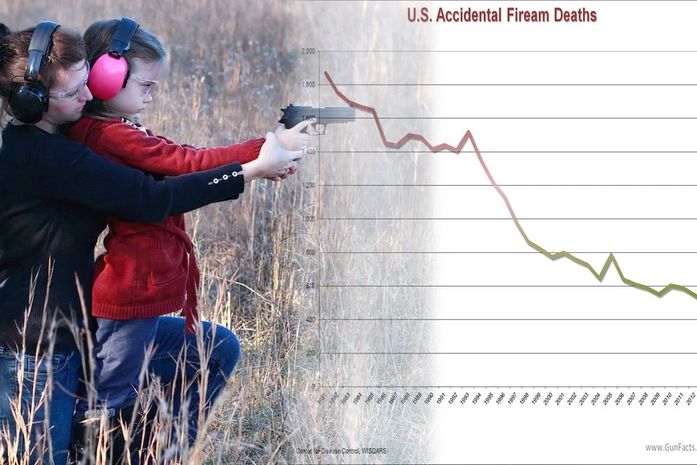 Não obstante o baixo número de acidentes, desde 1981 o número envolvendo armas desabou, saindo de quase 2 mil casos para pouco mais de 500. Ao que se deve isso? À restrição é que não é! Nunca se vendeu tantas armas lá quanto se vendeu desde à década de 90. De 1990 até os dias atuais foram comercializadas mais de 170 milhões de armas novas em solo americano. Tal queda (demostrada no gráfico que ilustra esse artigo), apontam alguns estudos, se devem a dois fatores principais. O primeiro é que as armas mais modernas se tornaram mais seguras e, o principal deles, há hoje uma forte conscientização de que as crianças devem ser educadas no trato com armas. Um desses programas é o Eddie Eagle criado pela NRA que possuiu comprovada eficácia na redução de acidentes envolvendo crianças e armas.
