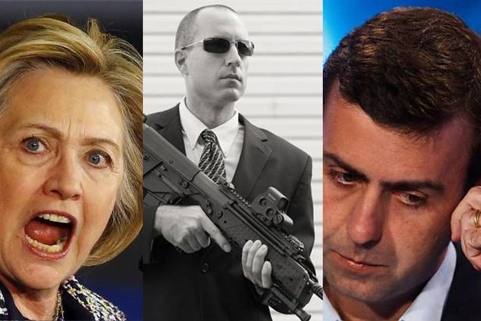 Donald Trump, em um discurso na sexta-feira (16), disse que a democrata anda cercada de vários seguranças e sugeriu: "Tirem as armas deles. Ela não gosta de armas. Vamos ver o que acontece. Seria muito perigoso". Alguém consegue ver, nessa declaração, uma ameaça à Hillary? Não! Claro que não! O que Trump fez, mais uma vez, foi escancarar a hipocrisia desarmamentista da esquerda americana que afirma constantemente que as armas não trazem segurança, mas - oh! Que surpresa! – não abrem mão de muito seguranças armados para lhes proteger.
