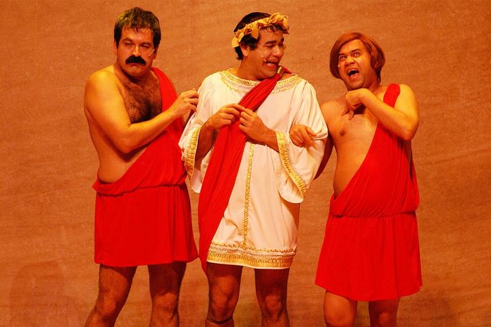 O espetáculo trás seis atores da Cia que se revezam em dezenas de personagens e aprimoram uma de suas principais características: improvisando sobre fatos da atualidade, onde aproximam o passado do presente pela comodidade.