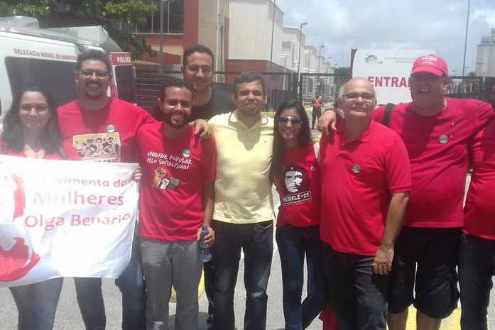 Um dos líderes do PSOL em Alagoas, o professor Gustavo Pessoa, foi até a sede do Centro de Convenções junto com lideranças partidárias e estudantes para fazer um protesto contra o presidente Temer.