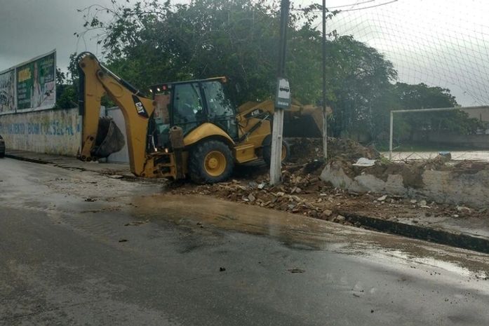 As fortes chuvas que atingem com intensidade a cidade desde a madrugada deste domingo (23) e podem ter contribuído para o desabamento de parte do muro. O imenso muro que protege o colégio abrange três ruas centrais de Arapiraca, a Rua José de Oliveira Leite, Paula Magalhães e Lúcio Roberto.