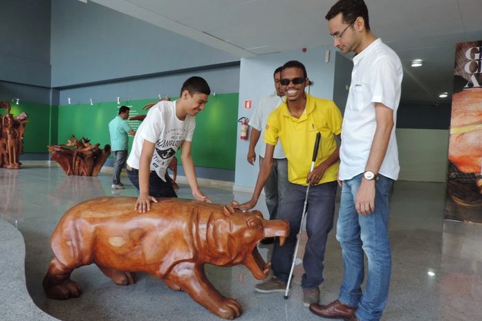 Muitos estiveram em uma galeria de arte pela primeira vez, a exemplo do Antônio Mário Ferreira, de 61 anos. Ele disse que gostou de tocar nas esculturas e descobrir animais como cavalo e peixe e brincou dizendo que queria levar tudo para casa, mas que não podia porque são peças pesadas. O gorila foi a escultura que mais encantou o Antônio e a maioria dos deficientes visuais que estiveram no Complexo.