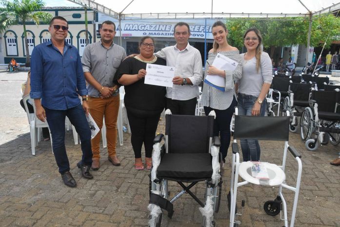 Na solenidade que contou com a presença do prefeito Celino Rocha, da Secretária, Loanne Vasconcelos, do presidente da Adefia, Miguel Tigre, do representante da Ortotec, Jordan, do vereador Gidel Aprígio e de funcionários da pasta, usuários assistidos pelo programa de reabilitação do setor de fisioterapia, foram contemplados com andadores, cadeiras de rodas e de banho.