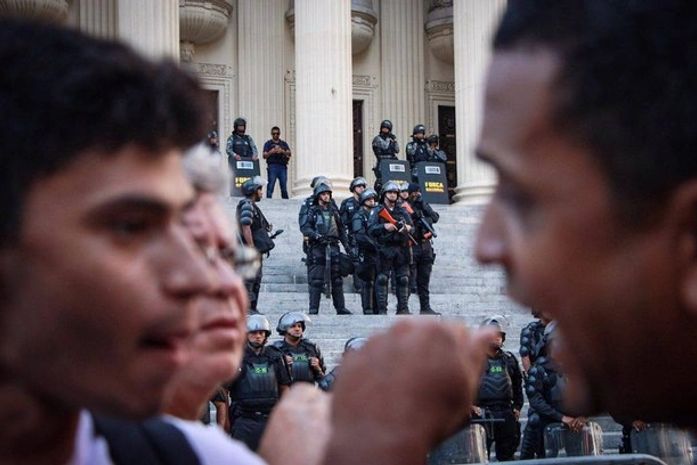 Ao longo do dia, manifestantes se reuníram em frente à Alerj em um protesto para tentar pressionar os deputados a manterem a prisão do trio acusado de atuar em esquema criminoso para favorecer empresas do setor de transportes. Por volta das 16h, parte desses manifestantes tentou invadir o prédio da Assembleia Legislativa para acompanhar a votação, provocando confusão. A Polícia Militar chegou a disparar tirar de bala de borracha para dispersar a multidão.