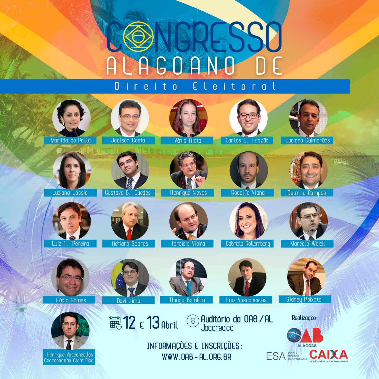 O ano é de eleições. O Brasil vai poder definir quem são os seus representantes na Presidência, Governo, Senado, Câmara Federal e Assembleias Legislativas. As crises vivenciadas na política e as mudanças no sistema eleitoral deixaram o cenário turbulento e provocaram a necessidade de capacitação e reciclagem. A Ordem dos Advogados do Brasil Seccional Alagoas (OAB/AL) irá abordar sobre o sistema, reforma política, registro de candidatura, financiamento eleitoral, combate a utilização da máquina pública, propaganda e todos os desafios do pleito que se aproxima, no Congresso Alagoano de Direito Eleitoral. O evento, organizado através de uma parceria com a Comissão de Direito Eleitoral, Escola Superior de Advocacia (ESA) e Caixa de Assistência dos Advogados (CAA/AL), está com inscrições abertas e ocorre nos dias 12 e 13 de abril. É preciso correr para garantir uma vaga.
