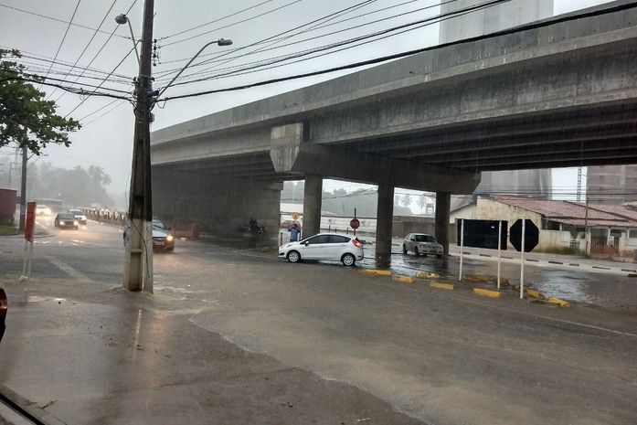 Na parte baixa da cidade, os bairros de Mangabeiras e Cruz das Almas apresentam muitos pontos de alagamentos e o trânsito está complicado. As calçadas foram encobertas pela água o que torna a travessia de pedestres um risco.