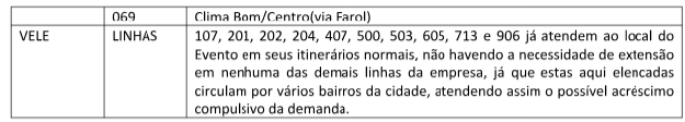 Além das linhas constantes na imagem abaixo, atendem normalmente ao local do evento as linhas, 102, 103, 104, 105, 108, 110 e 230, um total de 48 linhas para o atendimento de usuários.