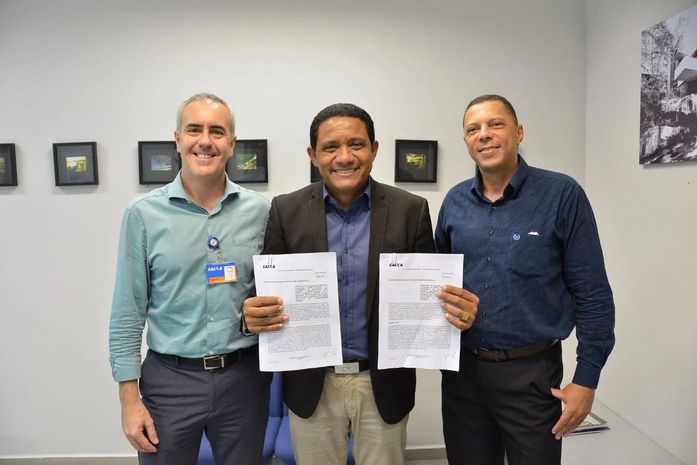 Para garantir mais qualidade de vida para a população e transformar as comunidades de Palmeira dos Índios, o prefeito Júlio Cezar assinou hoje (28) importantes convênios com a Caixa Econômica Federal em Alagoas. Na reunião que o prefeito teve com o Gerente de Governo da Caixa Sandro Pepe, eles assinaram dois convênios para pavimentação e drenagem das comunidades palmeirenses de Vera Cruz, em Palmeira de Fora, e Vila Esperança, no bairro de São Francisco.