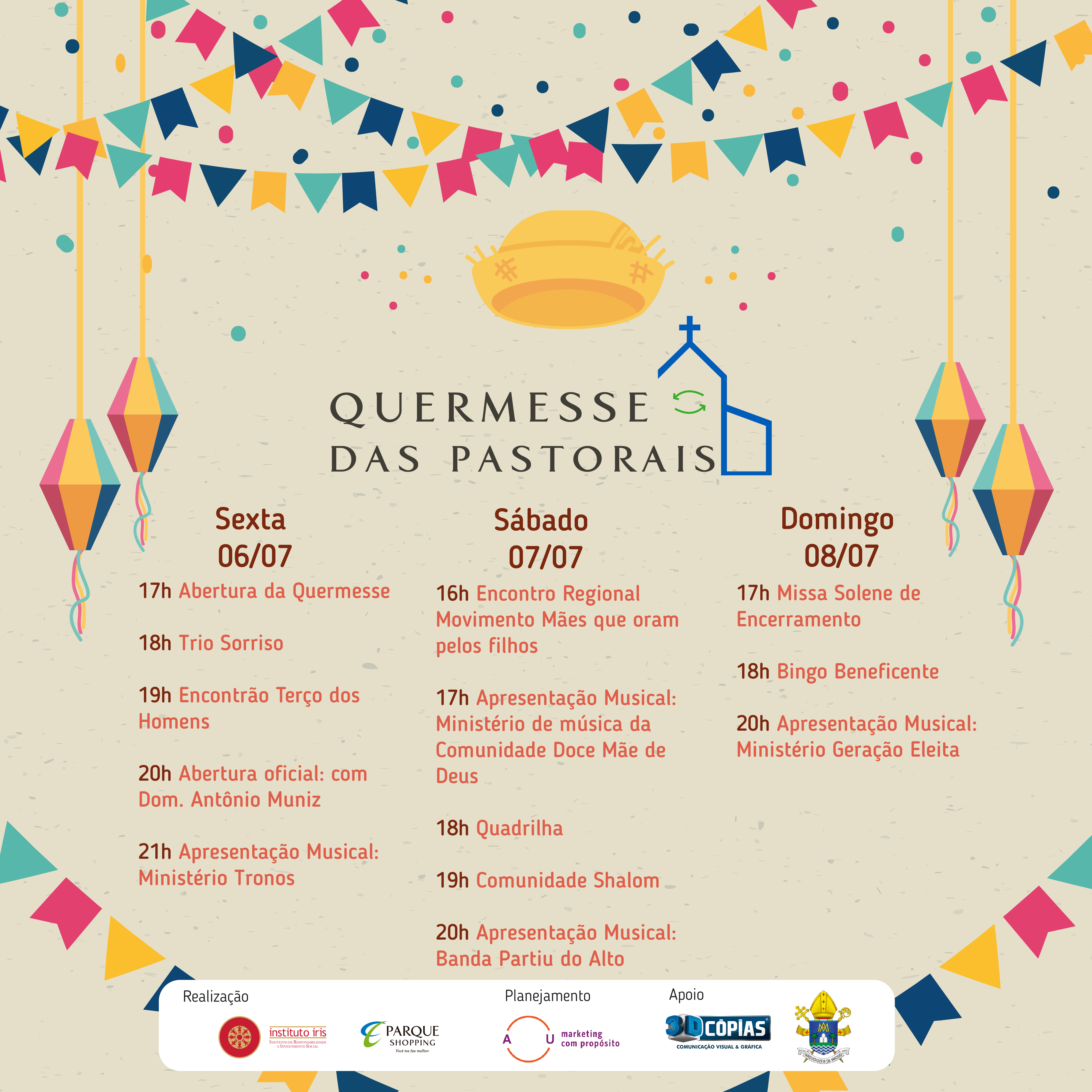 A Quermesse das Pastorais é um evento que irá reunir as paróquias de Maceió em um ambiente de confraternização e integração entre as diferentes pastorais voluntárias, que trabalham para que toda a arrecadação seja revertida nos projetos sociais fomentados pela Arquidiocese de Maceió. Esta ação faz parte do Programa de Projetos de Comunicação e Impacto Social realizado, em parceria com o Instituto Iris, em todos os shoppings do Norte e Nordeste da rede Aliansce, administradora do Parque Shopping Maceió.