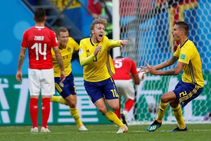 A Suécia venceu a Suíça por 1 x 0 e avançou às quartas-de-final da Copa do Mundo. Com isso, o país escandinavo volta ao grupo dos oito melhores times de uma Copa após 24 anos. A última vez foi em 1994, nos Estados Unidos, competição vencida pelo Brasil, quando chegou até as semifinais.