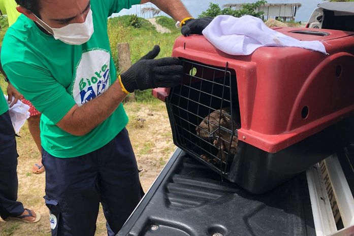 O coordenador do Biota, Bruno Stefanis, informou que o animal encalhou na praia. “Mas, por não ser um mamífero marinho, vamos entregar o animal ao Ibama. Não temos uma estrutura para esse animal compatível com a nossa realidade”.