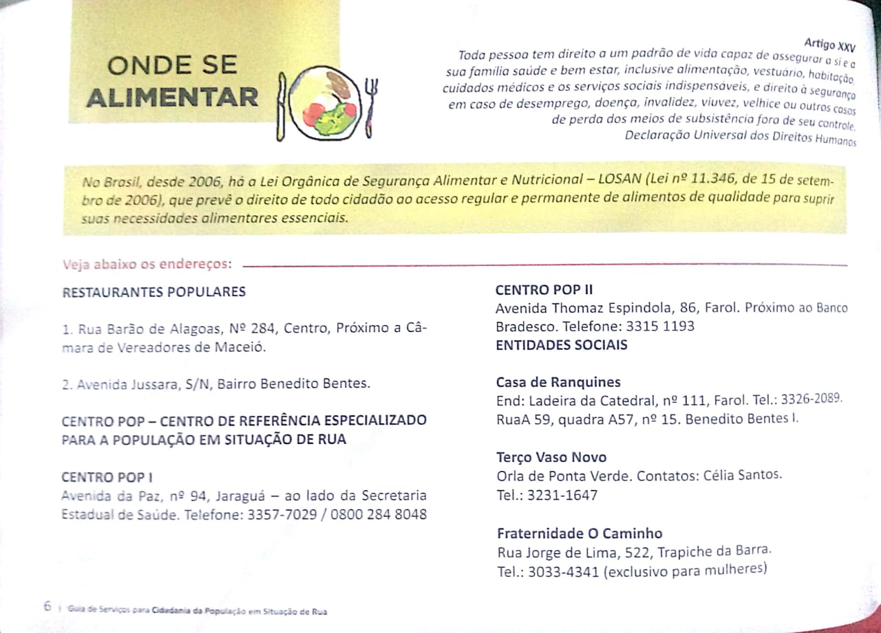 Nesta quarta-feira (25), a prefeitura de Maceió lançou um guia para orientar os moradores de rua sobre os serviços prestados pelo município para auxiliar no atendimento. “Estamos juntando essas informações nesse guia para facilitar o acesso dos moradores de rua aos serviços ofertados à população", disse o prefeito Rui Palmeira.