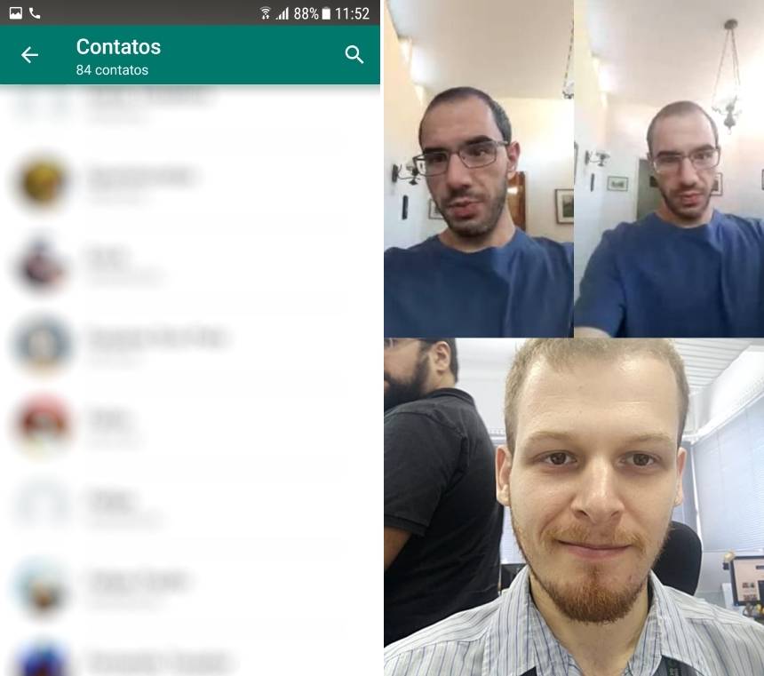 No aplicativo Whatsapp o recurso passou por vários testes, mas agora está disponível na versão 2.18.193 do APP. Nessa nova fase tecnológica o app permite videochamadas em grupos com até quatro pessoas participando simultaneamente do recurso. A tendência é que conforme as atualizações o número de participantes nas chamadas aumente.