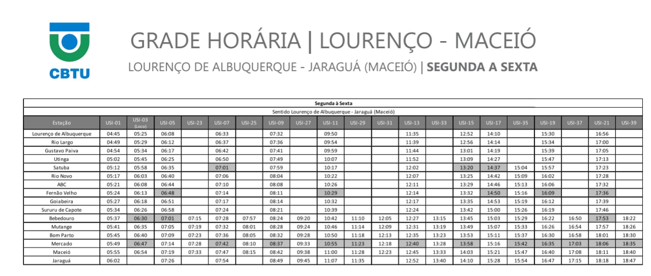 Confira a nova grade horária que entrará em operação a partir da próxima segunda-feira: