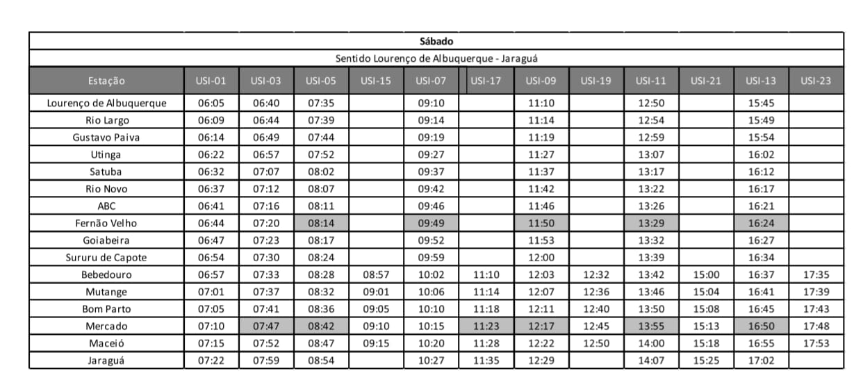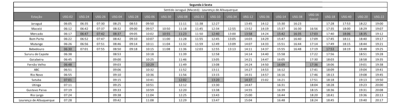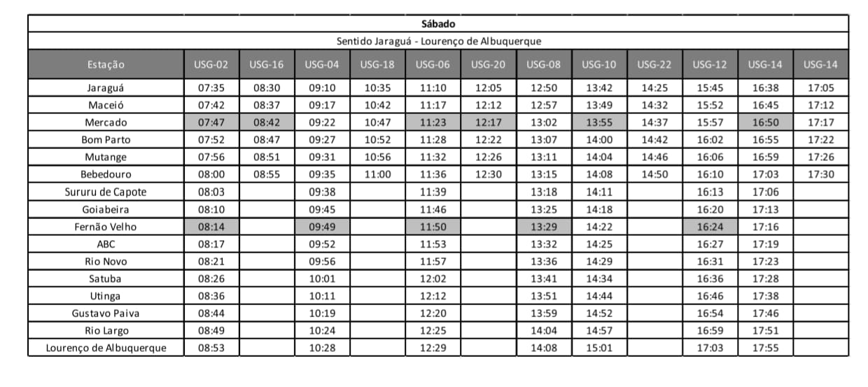 Uma novidade da nova grade horária, é que o VLT irá operar de Jaraguá a Lourenço de Albuquerque sem baldeação, apenas com uma parada na Estação Maceió. Ao todo serão implantadas mais 16 viagens de segunda à sexta-feira entre Jaraguá e Bebedouro. A grade horária nos dias de sábado também será alterada com mais 10 viagens entre Jaraguá e Bebedouro.