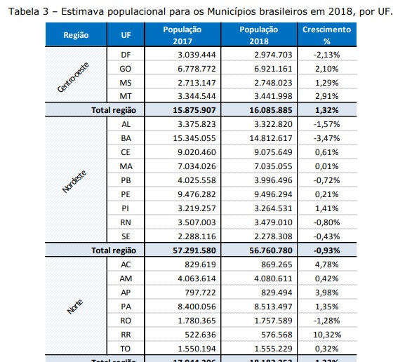 Os dados da estimativa foram divulgados ontem e segundo a Confederação Nacional dos Municípios (CNM), o levantamento do número de habitantes é de suma importância aos Municípios, porque serve de referência para definição dos coeficientes de repasse de recursos ao Fundo de Participação dos Municípios - FPM.