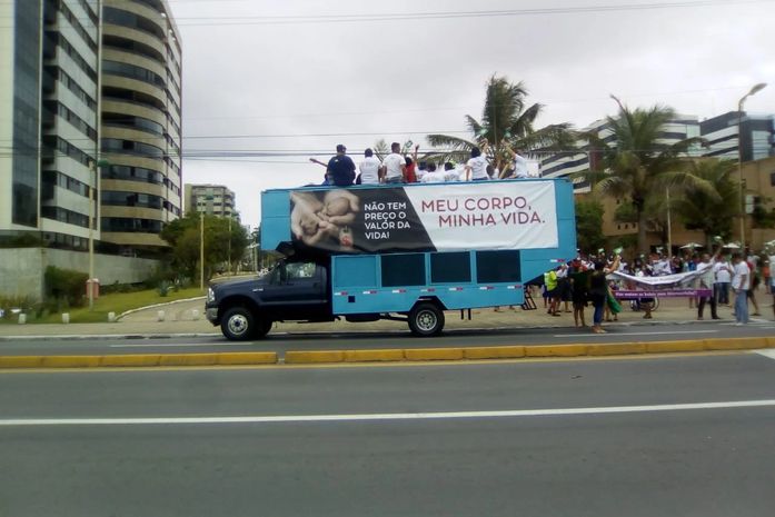 Com um público em torno de 100 pessoas, o homem (talvez, um religioso) clamava em cima do trio elétrico para que a platéia repugnasse a idéia do aborto.