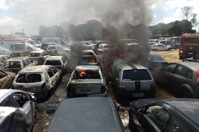 Os veículos guardados no local são apreensões do Departamento Estadual de Trânsito (Detran) e Departamento de Estradas e Rodagem (DER). Alguns carros que não foram atingidos pelas chamas estavam sendo retirados do pátio, por funcionários da agência.