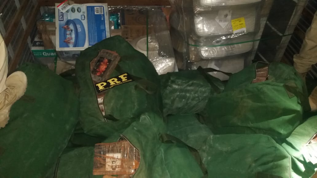 Enquanto isso, uma parte da equipe fazia a checagem da carga transportada no caminhão e constataram que além de cerâmicas e sofás o veículo estava carregado de drogas. Vinte e duas sacolas com diversos tabletes de cocaína, totalizando mais de 1,2toneladas, estavam sendo transportadas no veículo.