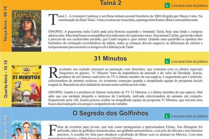 High School Music – O DesafioO Museu da Imagem e do Som de Alagoas (Misa), em homenagem ao dia dedicado aos pequenos, realizará, de 08 a 12 de outubro, a Semana da Criança. O projeto conta com exibições de filmes infantis, de segunda à sexta-feira, de 9h às 15h.