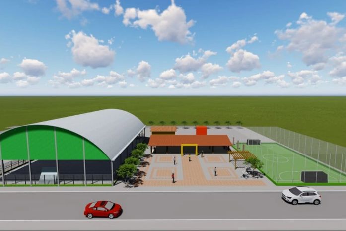 O complexo será composto de quadra coberta, área de lazer para eventos tipo churrascos, confraternizações da comunidade, eventos de igrejas e mais um campo society.