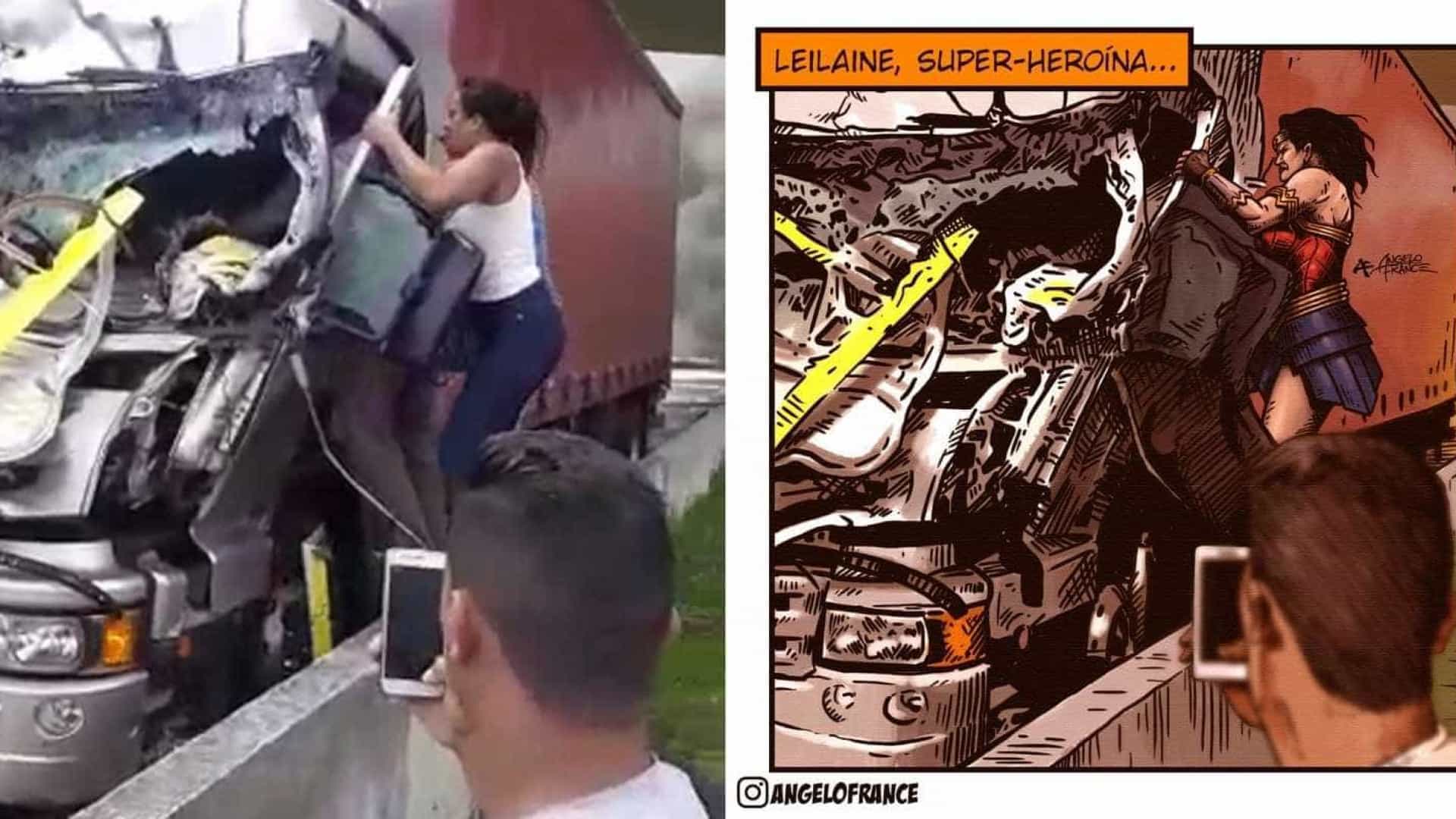 Com a repercussão do caso, Leilane chegou a ser comparada com a 'Mulher Maravilha' e ganhou uma ilustração em que aparece vestida como a heroína no momento do resgate (imagem acima).