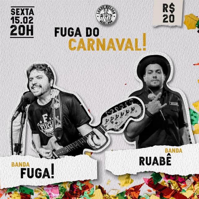 Sexta-feira é dia de fugir dessa vibe carnavalesca do melhor jeito: curtindo clássicos do rock com a banda Ruabê e soltando a voz junto com a Fuga! E aí, partiu?