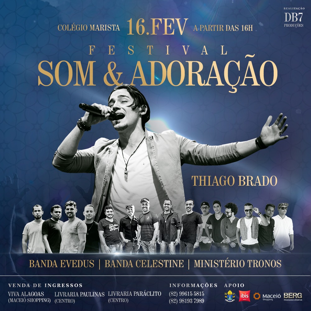 Será promovido em Maceió o primeiro Festival Som & Adoração. O evento contará com a apresentação das bandas alagoanas Celestine, Tronos e Evedus; além do show da atração principal, o cantor Thiago Brado.