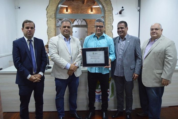 A Câmara Municipal de Maceió realizou sessão solene nesta segunda-feira (11), no Plenário Silvânio Barbosa, para a entrega do Título de Cidadão Honorário de Maceió ao técnico do Centro Sportivo Alagoano (CSA), Marcelo Ribeiro Cabo. A honraria foi de iniciativa do então vereador, e agora deputado estadual, Silvio Camelo (PV), que destacou a contribuição do técnico para o futebol alagoano.