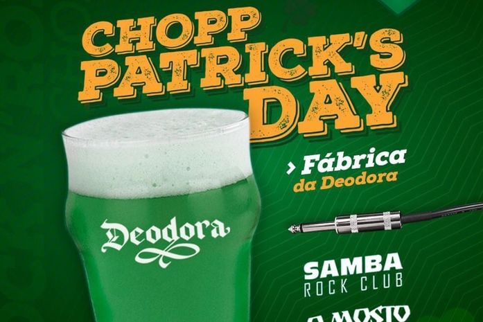 Guarde a sua sorte e sua sede, pois está chegando o Chopp Patrick's Day!! O evento deve acontecer na fábrica da Deodora com muito chopp verde, shots, drinks e Rock! Serão seis estilos de chopp artesanal direto dos tanques da Deodora. O evento acontece a partir das 16h.