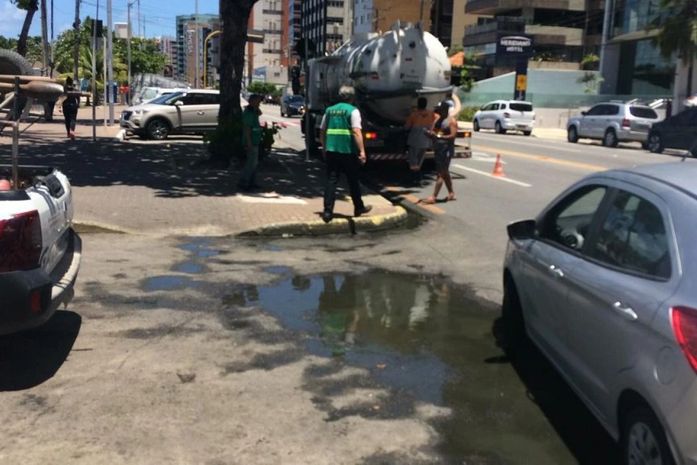 Para desobstruir a galeria de águas pluviais e sugar o efluente da galeria de esgoto, a Sedet acionou a equipe da Secretaria Municipal de Infraestrutura (Seminfra). A ação foi concluída, por volta do meio-dia com a participação dos fiscais ambientais Thyers Batista, José James de Lima, Luiz Roberto Gomes, o coordenador de fiscalização ambiental da Sedet, José Soares Barbosa e o técnico da Seminfra, que atua na manutenção de galerias pluviais, José Luiz Tibúrcio.