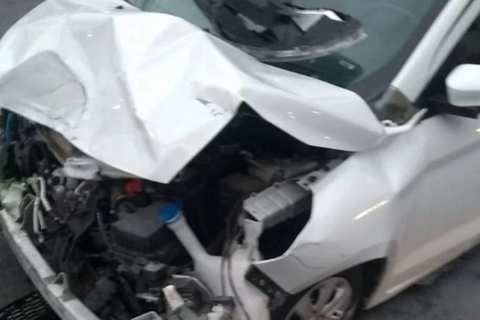 O coletivo da empresa São Francisco teve a lateral atingida pelo carro de passeio, que ficou com a parte frontal muito danificada. O impacto da colisão acionou o airbag do veículo menor.