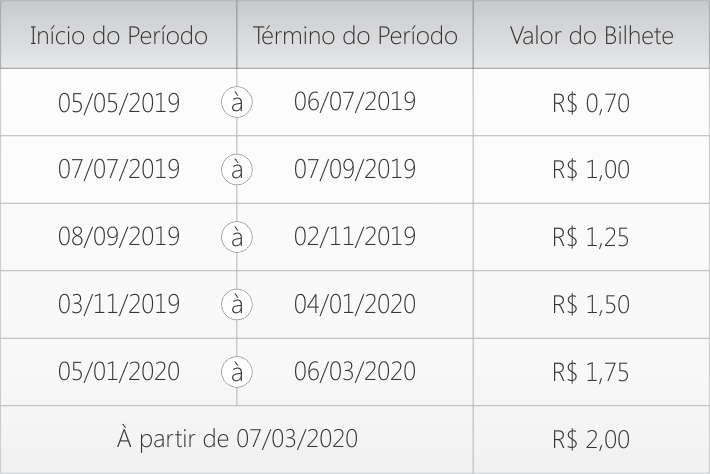 Ainda segundo a nota emitida, o reajuste chegará a R$ 2,00 a partir de 07/03/2020.