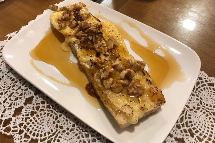 Tartine Noix Et Miel (R$ 28,90) - generosa fatia de pão selado na manteiga, coberta com queijo brie, nozes e mel. Trazendo um mix de texturas no paladar, essa tartine é composta de muito sabor e sutileza, com ingredientes bem selecionados e dosagem certa de cada um deles, percebendo-se a presença de todos individualmente.